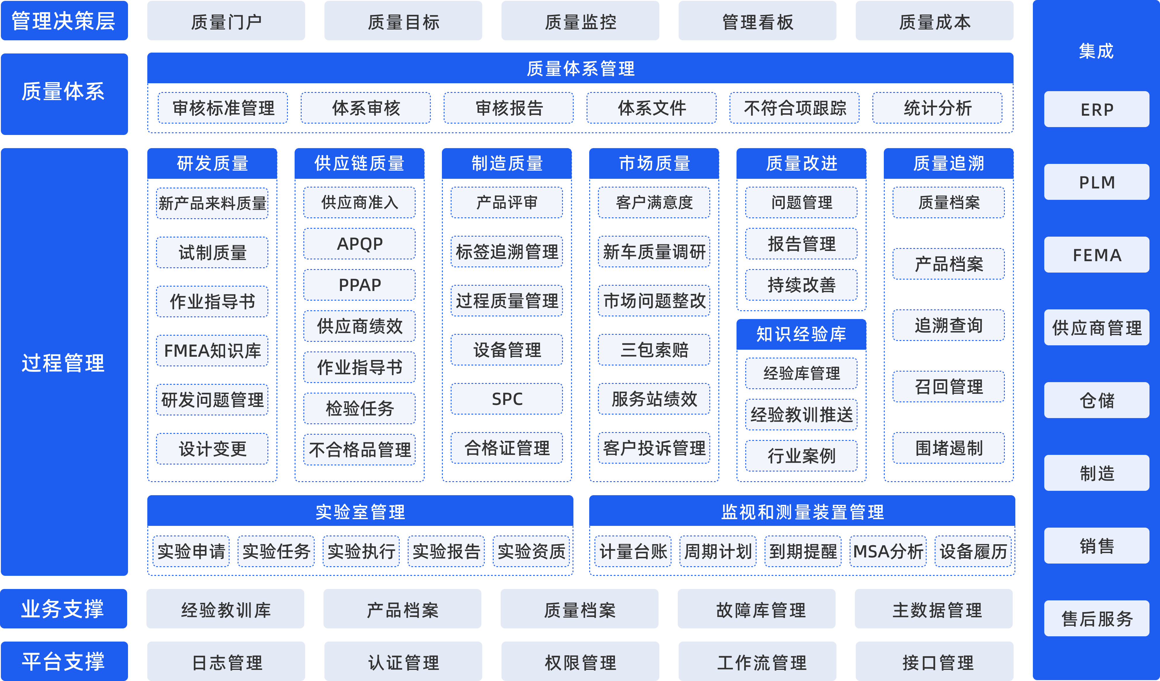 内置行业法规库与改进工具(如PDCA、六西格玛),QMS助力企业满足ISO、IATF等标准要求,并通过闭环优化推动质量水平持续提升,建立差异化优势。